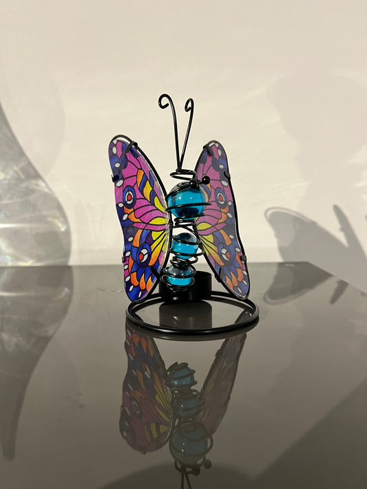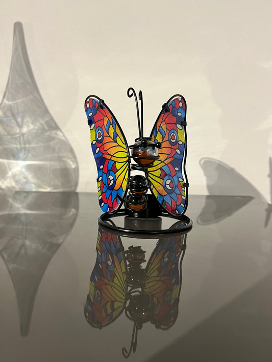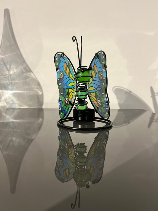 Glazen vlinder waxinelichthouder – blauw