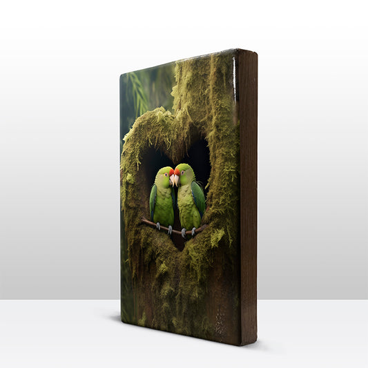 Artchoices exclusive: 183. Verliefde parkietjes 3 op houten paneel(tje) klein