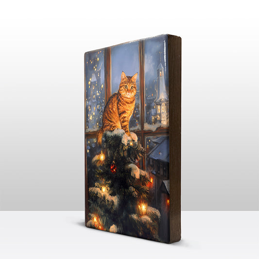 Artchoices exclusive: 152. Kerstboom met kat in de top 2 op houten paneel(tje) klein