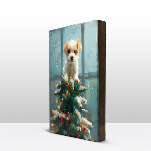 Artchoices exclusive: 156. Kerstboom met hondje in de top op houten paneel(tje) klein