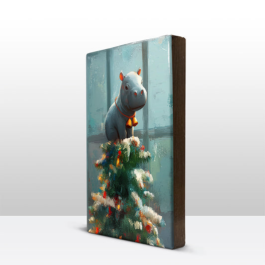 Artchoices exclusive: 157. Kerstboom met baby nijlpaard in de top op houten paneel(tje) klein