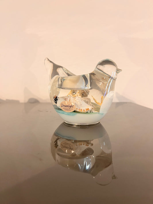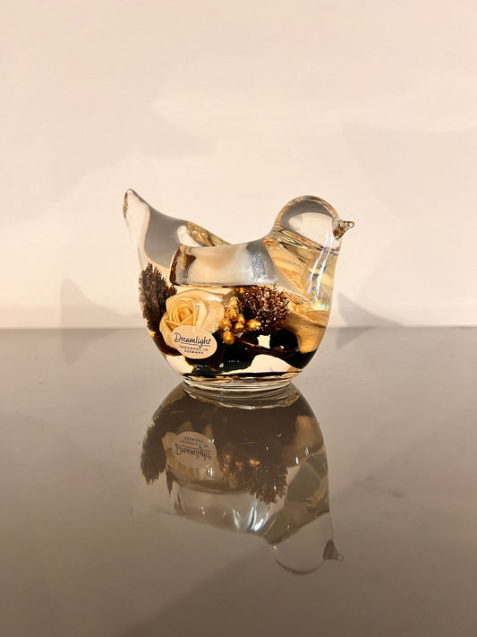 Glazen vogeltje in goudtinten – waxinelichthouder