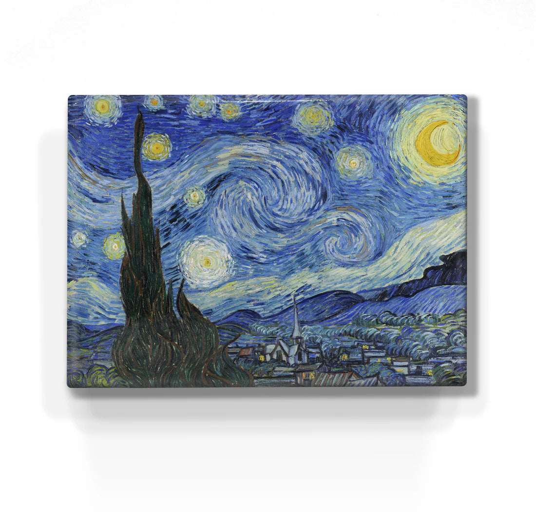 160. The starry night - Vincent van Gogh op houten paneel(tje) groot