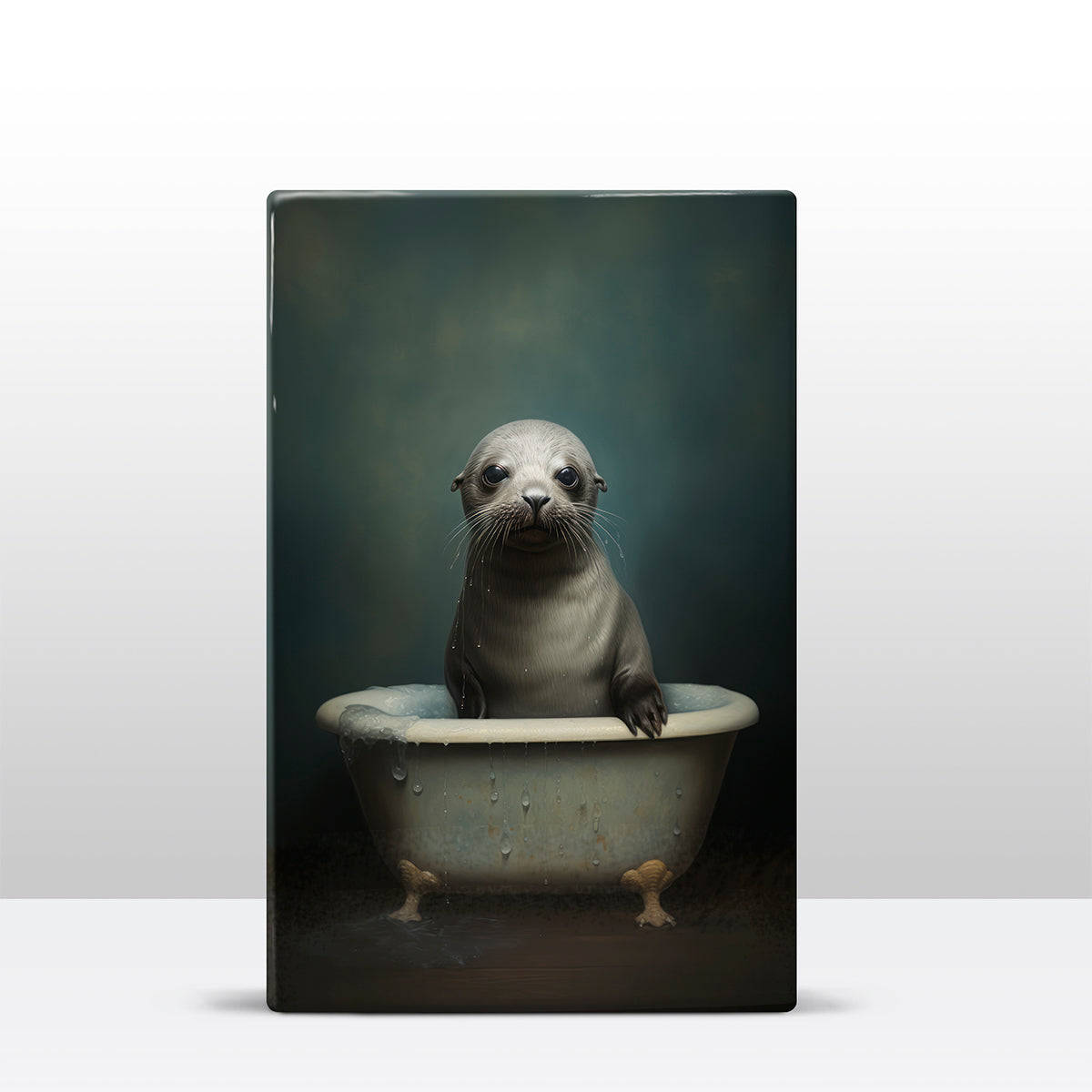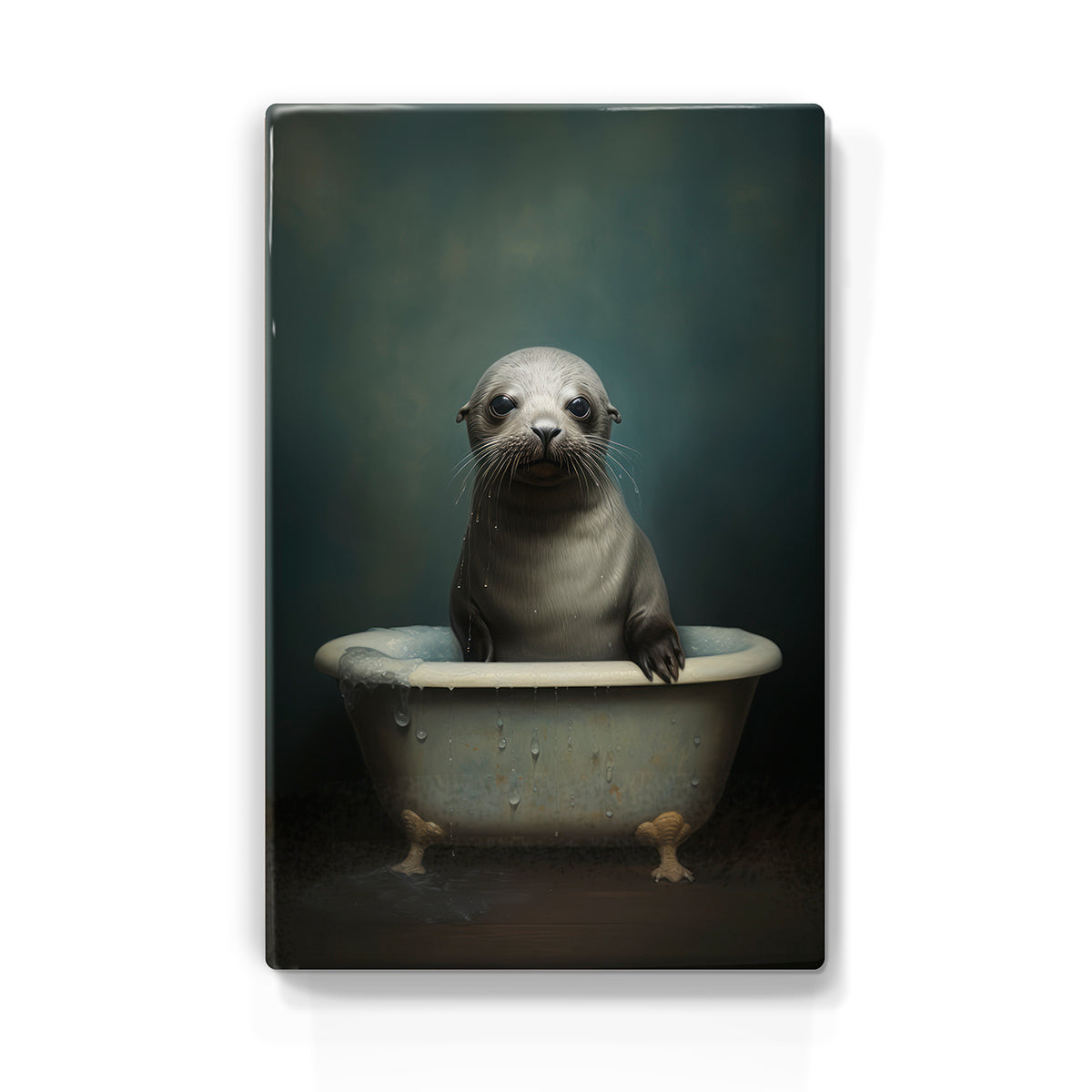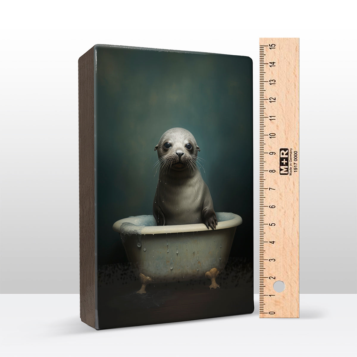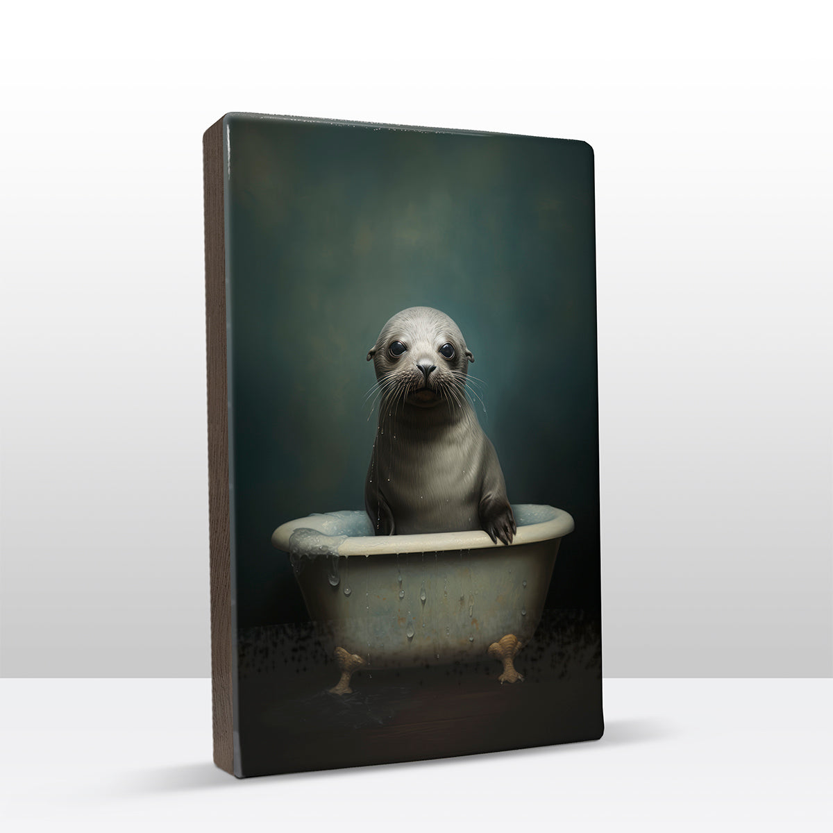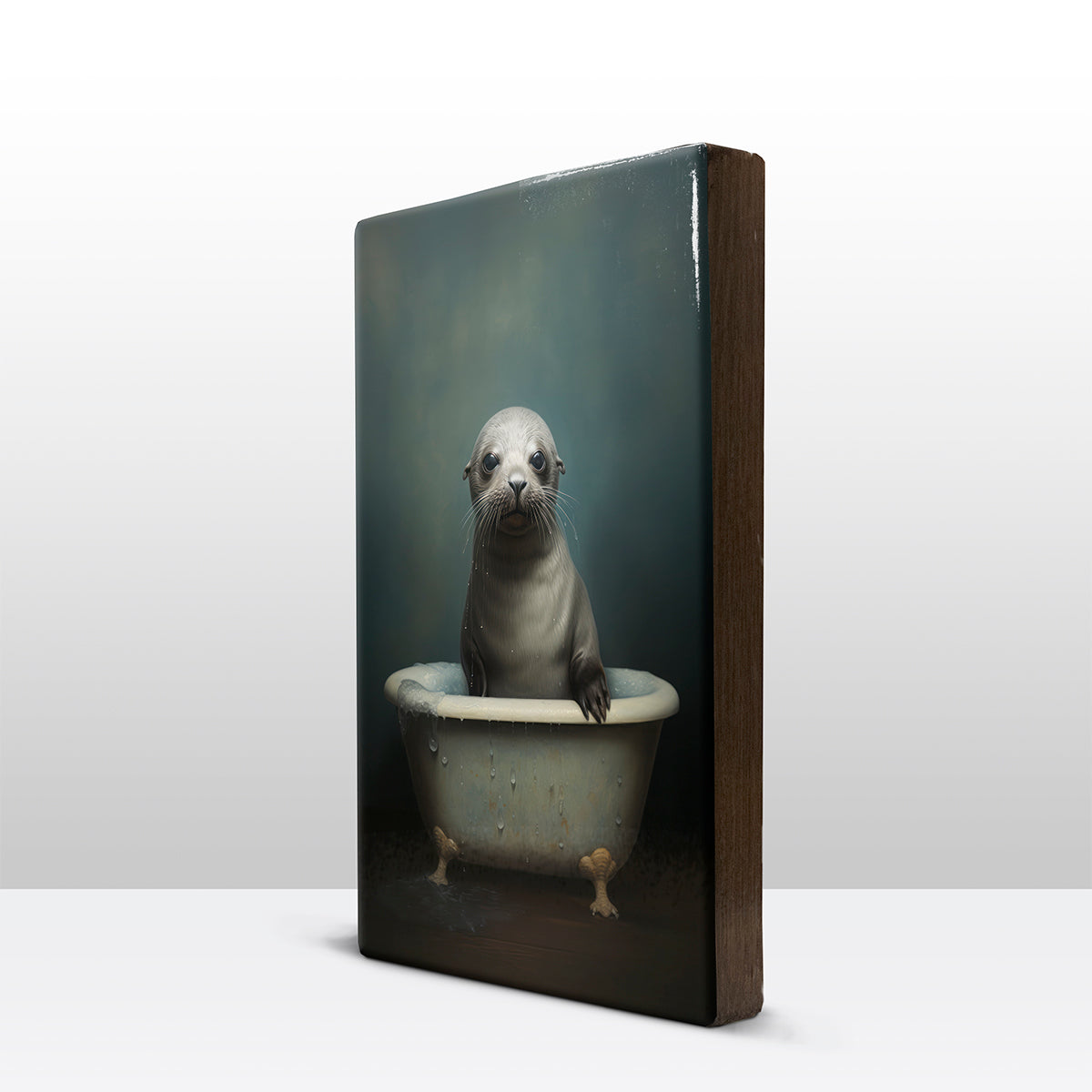 Artchoices exclusive: 001. zeehondje in badkuip op houten paneel(tje) groot