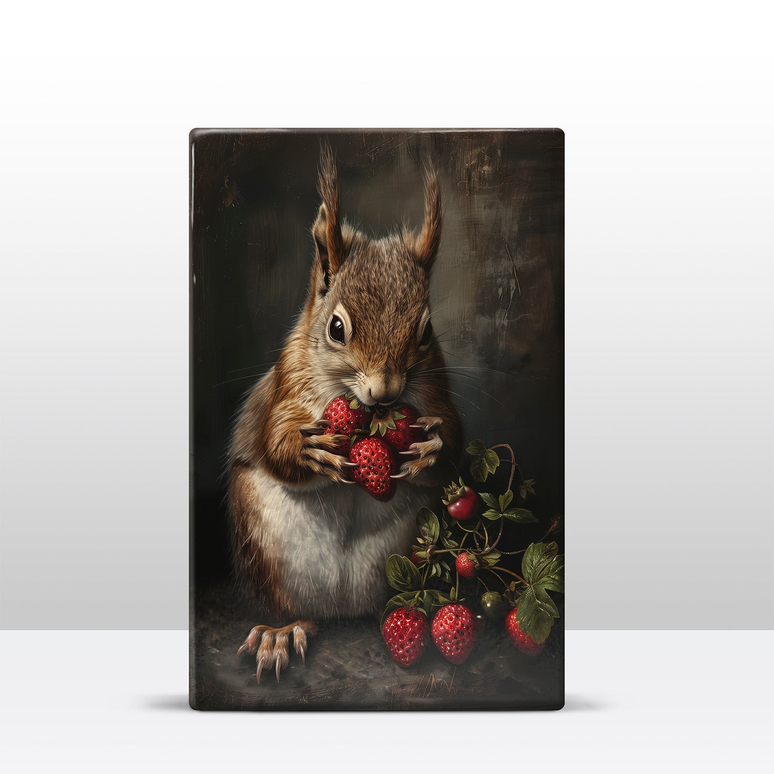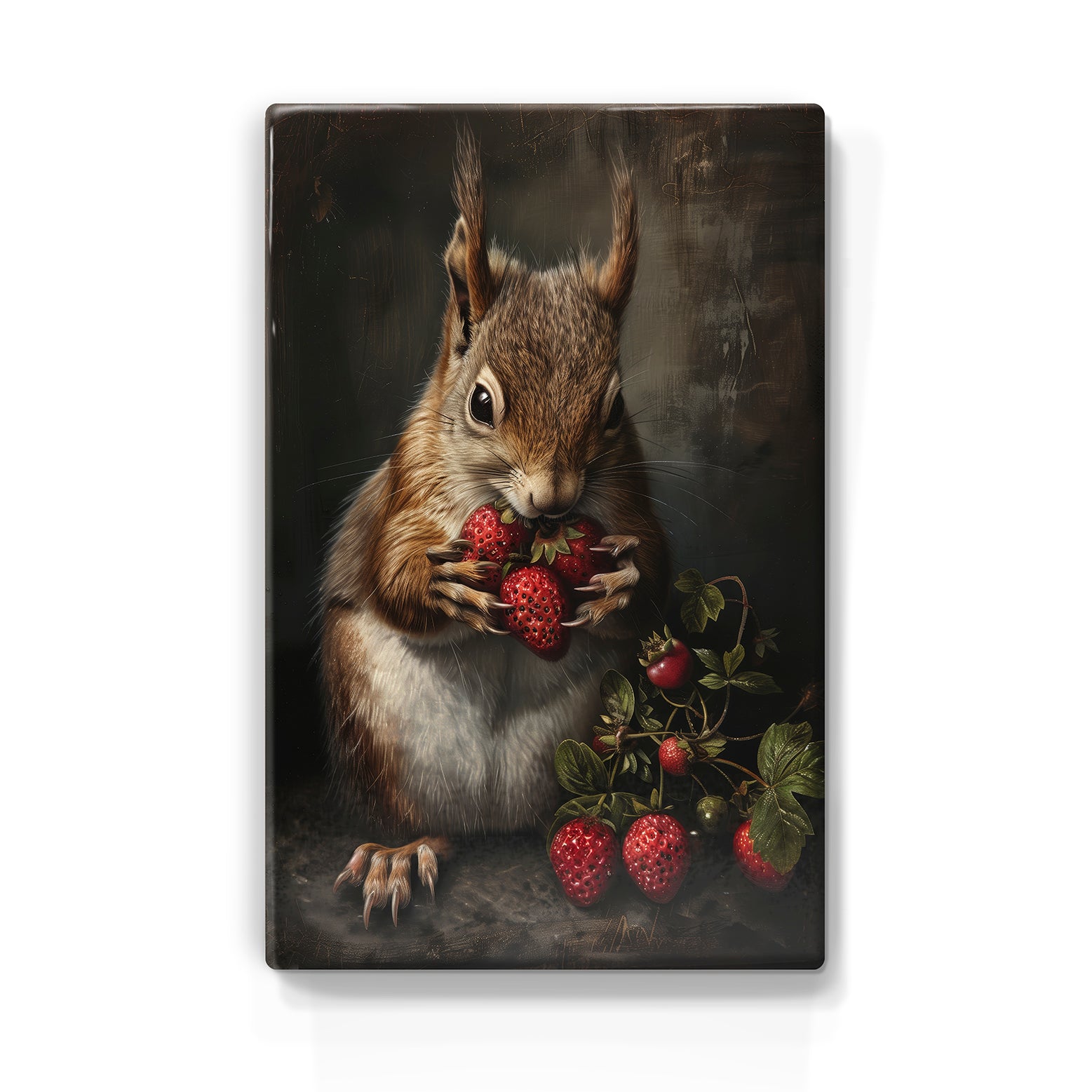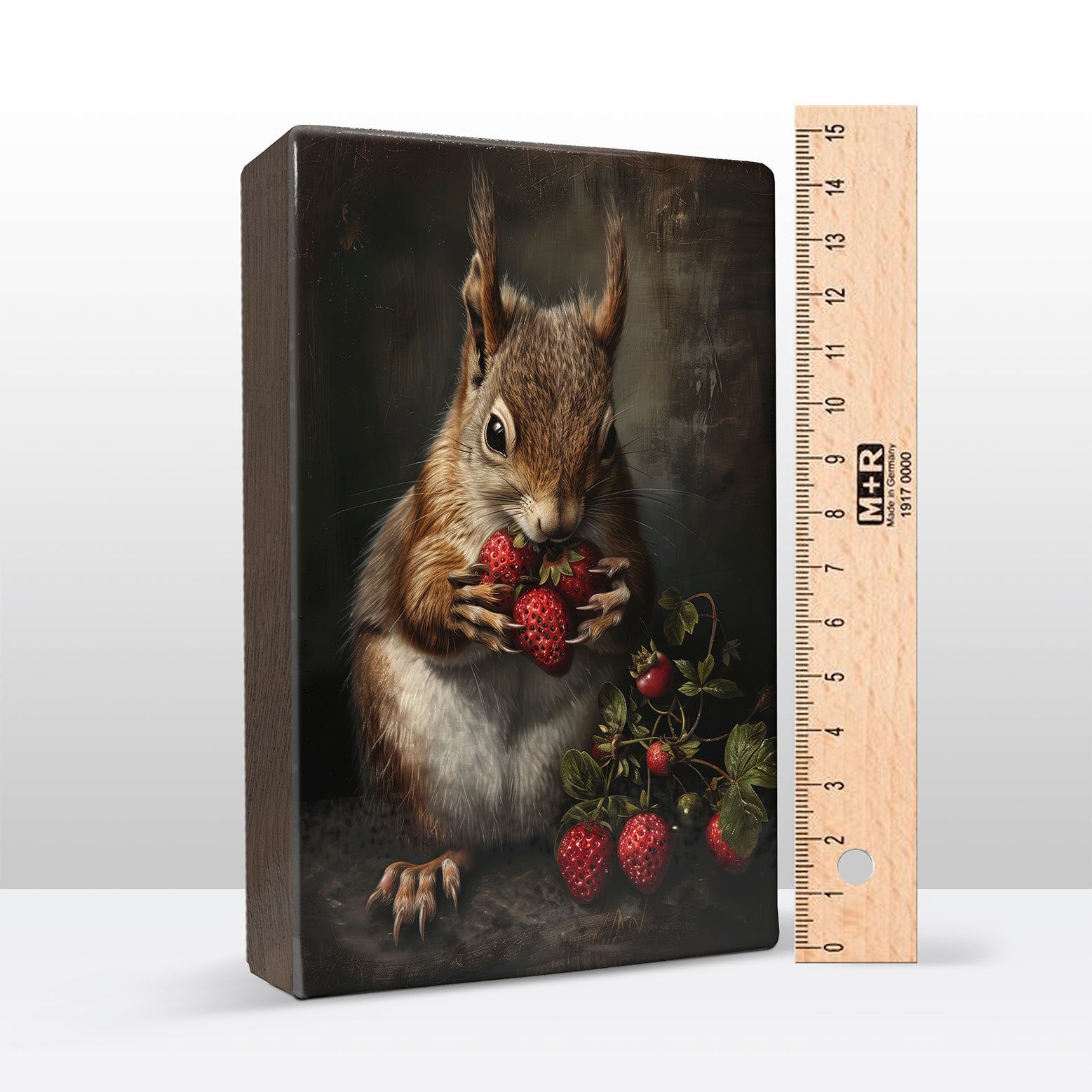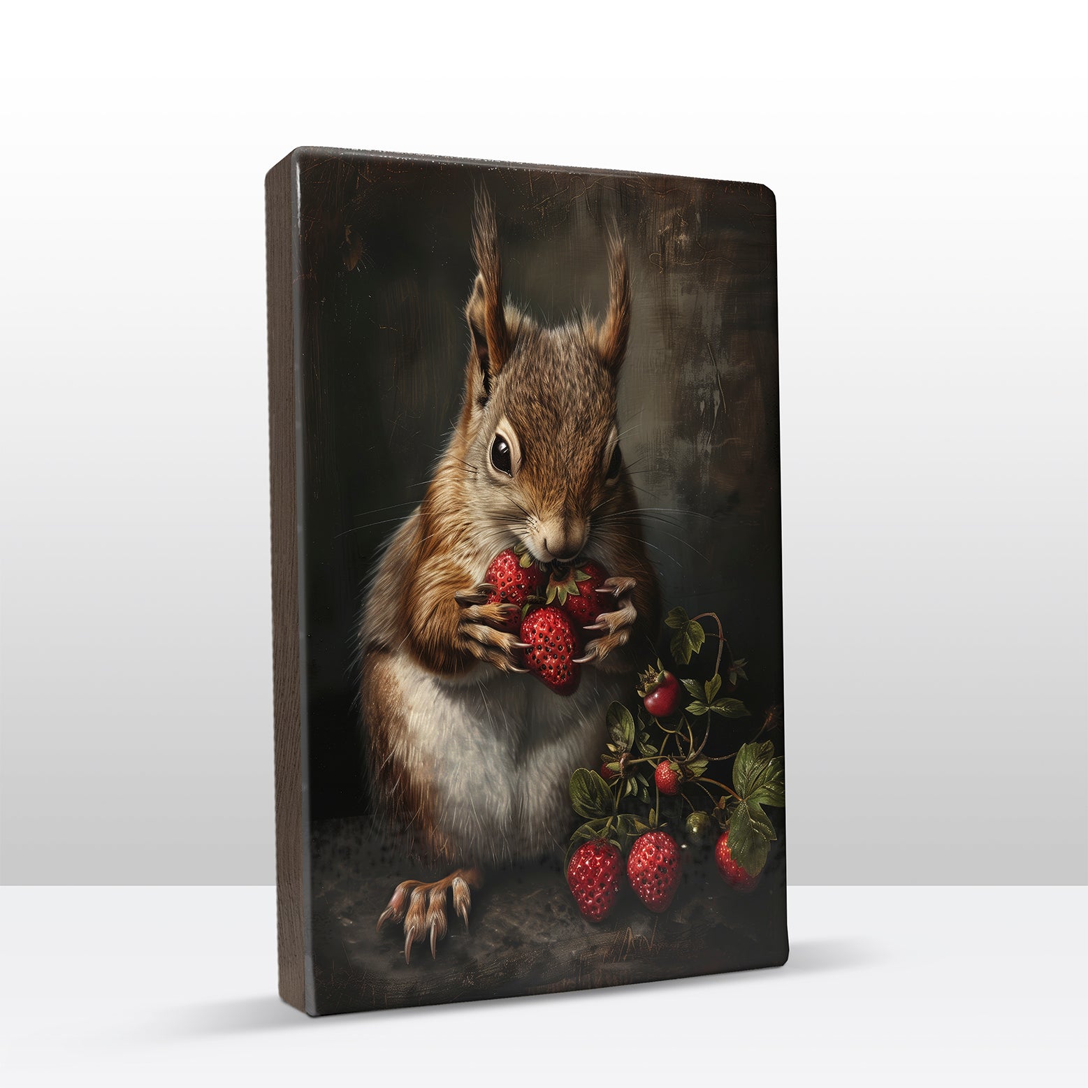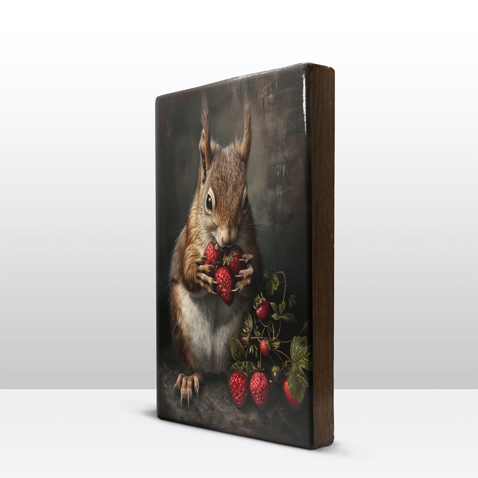 Artchoices exclusive: 069. Schattige eekhoorn met aardbeien op houten paneel(tje) groot