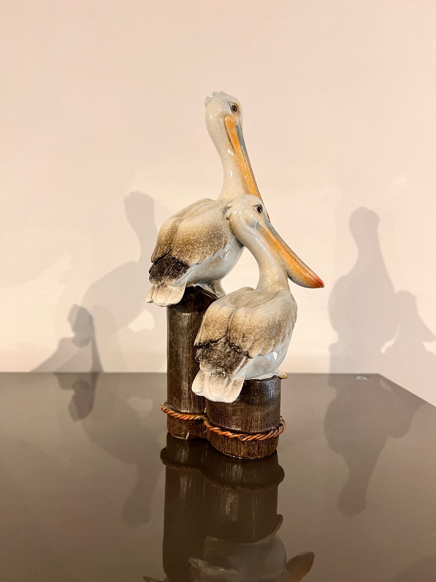 Pelikanen op houten palen – decoratief beeld