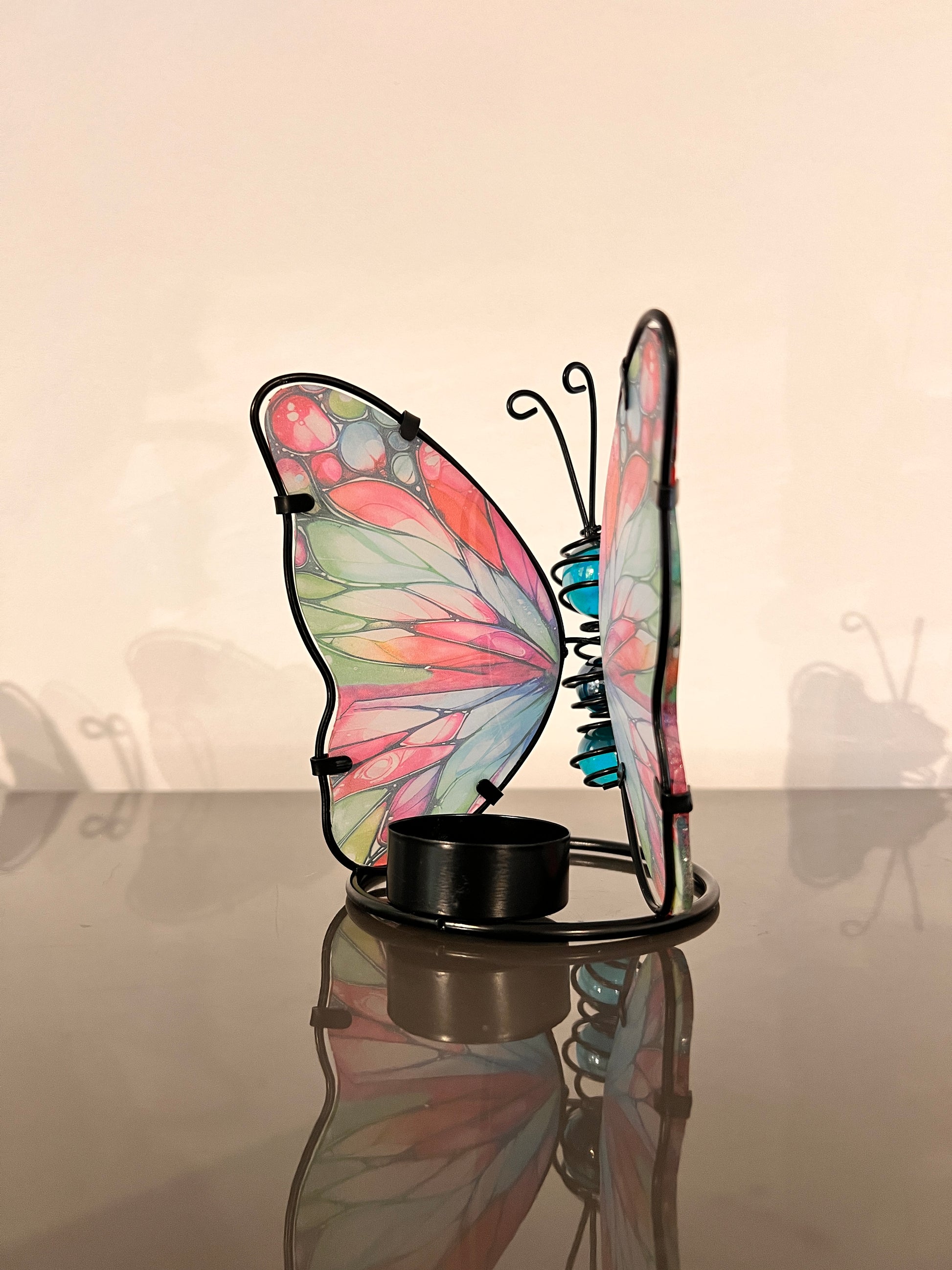 Plaats er een waxinelichtje of LED-theelichtje in en de vlinder komt helemaal tot leven. De vleugels gaan zacht oplichten en zorgen voor een warme, sprookjesachtige sfeer — perfect voor gezellige avonden.